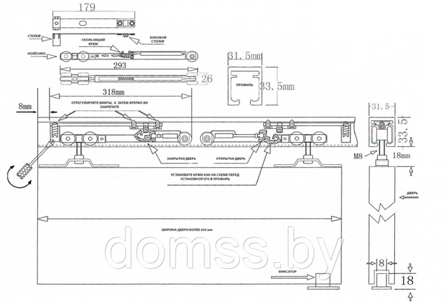 МЕХАНИЗМЫ ДЛЯ РАЗДВИЖНЫХ ДВЕРЕЙ С ДОВОДЧИКОМ
